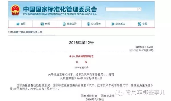 關(guān)于新版GB1589的修訂成為大家熱議的話題,何時正式發(fā)布牽動著國內(nèi)車輛生產(chǎn)企業(yè)、物流運輸企業(yè)和終端用戶的心,根據(jù)中國國家標(biāo)準(zhǔn)化管理委員會的最新公告,2016版GB1589在2016年7月26日已正式實施發(fā)布。