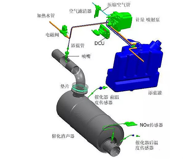 用戶(hù)國(guó)5發(fā)動(dòng)機(jī)采用SCR選擇性催化還原技術(shù),可滿(mǎn)足國(guó)5的排放法規(guī)。柴油機(jī)所產(chǎn)生的微粒(PM)和氮氧化物(NOx)是排放中兩種最主要的污染物。從目前降低汽車(chē)尾氣排放的技術(shù)途徑來(lái)看,要達(dá)到國(guó)4、國(guó)5排放標(biāo)準(zhǔn),一般不再?gòu)陌l(fā)動(dòng)機(jī)本身的結(jié)構(gòu)方面采取措施,通常是采取排氣后處理的方式來(lái)降低污染物的排放量,而尿素-SCR 選擇性催化還原法是最具現(xiàn)實(shí)意義的方法。