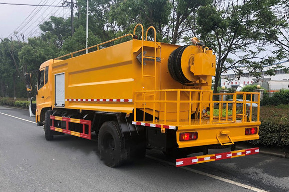 配有高壓水泵的水罐車,清洗城市下水道的沉積物,疏通下水道。也可用于清洗工業(yè)排液管道、壁面等,并可兼作灑水、運(yùn)水和沖洗公路用,緊急時(shí)可用于救火。