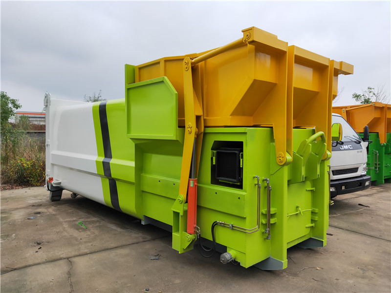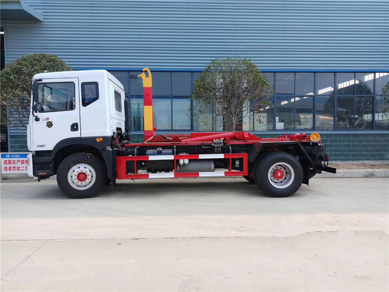 勾臂垃圾車【車廂可卸式垃圾車】車體和垃圾箱可完全分離,由液壓系統(tǒng)來完成收箱/放箱,在平日里可將車載垃圾箱放置到各個垃圾收集點(diǎn),待垃圾收集滿后,該車可直接開赴收集點(diǎn),通過液壓系統(tǒng)的操控,可將垃圾車后座上加裝的勾臂放下,掛住站內(nèi)箱體前端的連接點(diǎn),將垃圾箱拉**車體的后座上,此時即可開動車輛,將垃圾運(yùn)送垃圾處理站內(nèi),進(jìn)行自卸式傾倒,優(yōu)點(diǎn)就是可一車配多斗,一輛車就可以維持?jǐn)?shù)個垃圾收集站的運(yùn)轉(zhuǎn),效率高,且箱體為密封式設(shè)計(jì),不會造成二次污染。
