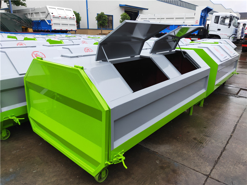 勾臂垃圾車配套移動(dòng)垃圾箱外形以上梯形下長(zhǎng)方形、上弧形下長(zhǎng)方形、上弧形下弧形、長(zhǎng)方形為主,箱體兩邊各帶一對(duì)或二對(duì)垃圾投入口或頂部開(kāi)口,帶蓋式箱體能夠避免風(fēng)將輕質(zhì)垃圾(塑料袋,廢紙等)吹散和防止雨水進(jìn)入箱內(nèi);箱體底部帶一對(duì)鐵輪方便吊上卸下時(shí)垃圾箱的移動(dòng),箱體后部可開(kāi)啟【帶鎖緊機(jī)構(gòu),配備密封條】。勾臂垃圾箱外觀形狀、大小容積可根據(jù)用戶需求定制加工。