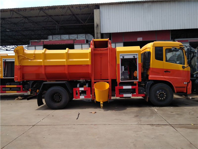 掛桶式糞污糞便清運(yùn)車(chē)配掛桶提升機(jī),可配合垃圾桶使用,通過(guò)液壓提升裝置可將垃圾桶內(nèi)污泥、糞污慢慢提升傾倒入車(chē)廂內(nèi),裝滿(mǎn)后運(yùn)輸?shù)绞占c(diǎn)進(jìn)行自卸式傾倒。適用于全國(guó)通用標(biāo)準(zhǔn)的120升、240升垃圾桶,鐵桶、塑料桶等。優(yōu)點(diǎn)在于一臺(tái)車(chē)可配多個(gè)垃圾桶使用,密封好,運(yùn)輸途中滴水不漏,駕駛室內(nèi)外兩用操控,司機(jī)師傅不下車(chē)在駕駛室內(nèi)即可完成箱體卸料。廣泛用于收運(yùn)含水污泥、糞污糞便、含水垃圾、淤泥等。