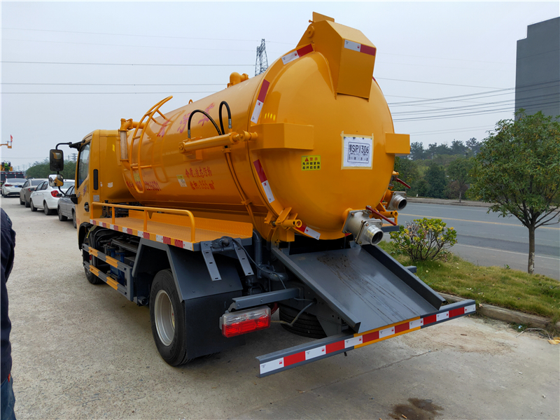 吸污車專用部分由取力器、傳動軸、真空吸污泵、壓力罐體、液壓部分,管網(wǎng)系統(tǒng)、真空壓力表、視糞窗、洗手裝置等組成,隨車配置大功率真空吸污泵(可選裝水環(huán)式真空泵)和優(yōu)質(zhì)液壓系統(tǒng),罐體封頭一次壓鑄成型、雙頂自卸。
