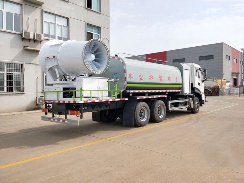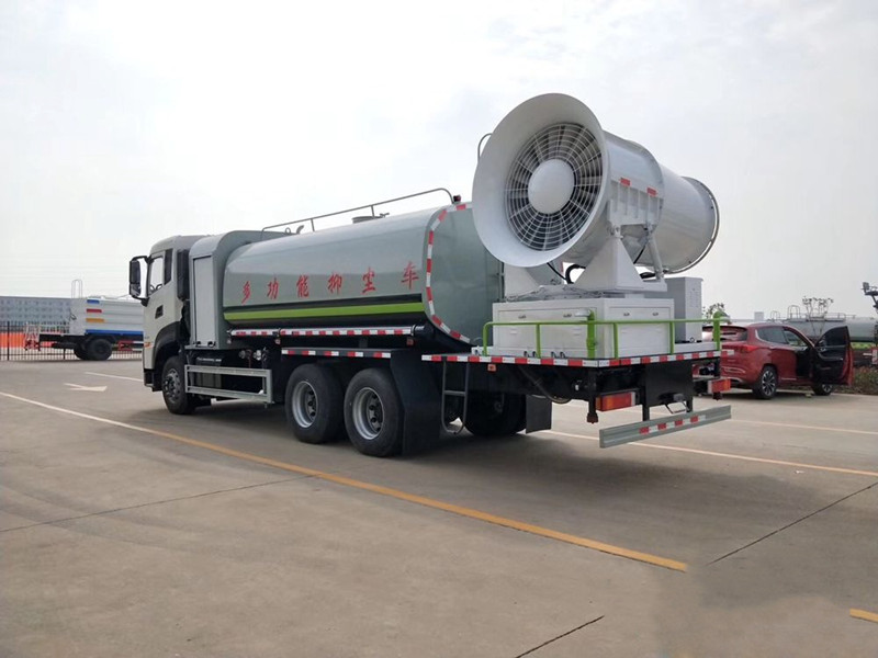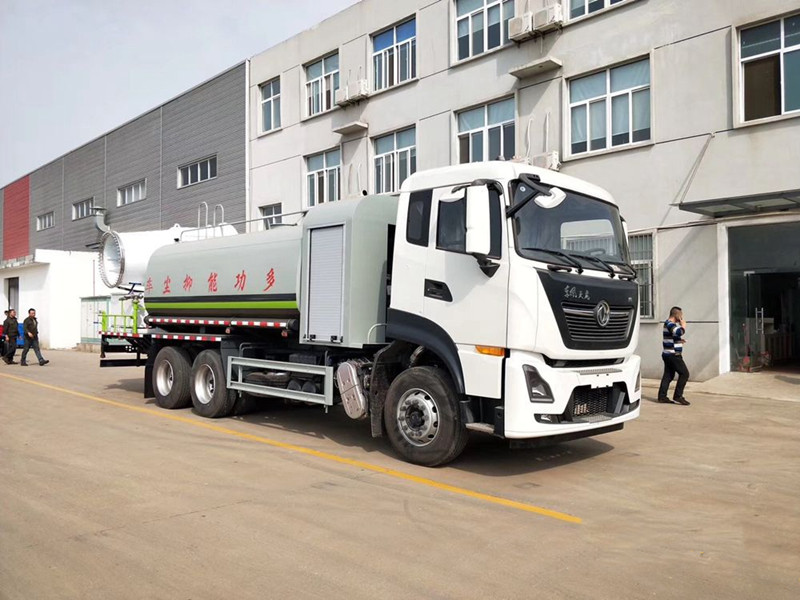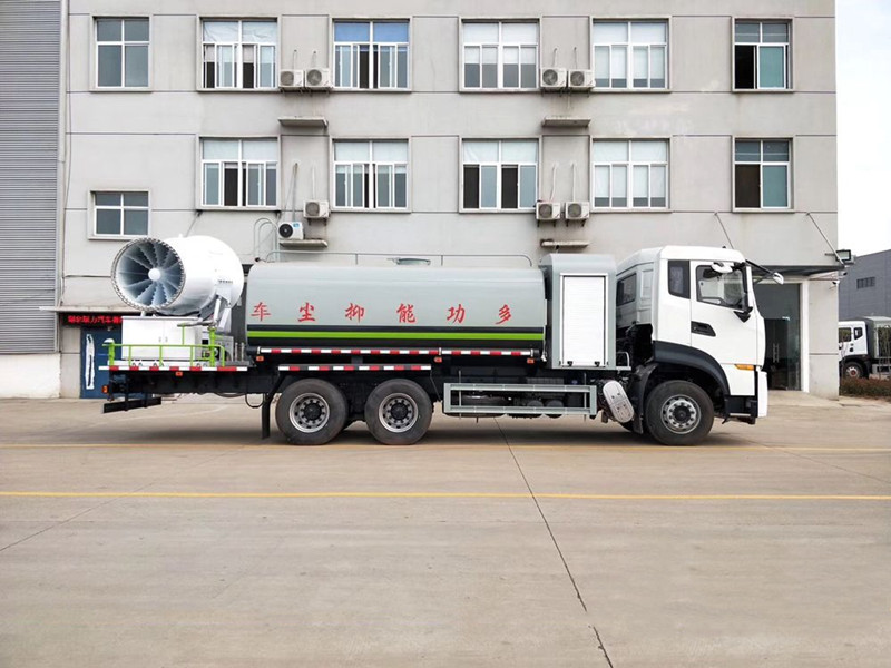 灑水車工作主要由發(fā)動(dòng)機(jī)帶動(dòng)變速箱,變速箱上安裝的取力器帶動(dòng)灑水車水泵產(chǎn)生動(dòng)力,將罐體內(nèi)部的水通過(guò)管路噴灑出去,水泵可自吸自排。可根據(jù)用戶需求選配抑塵霧炮。